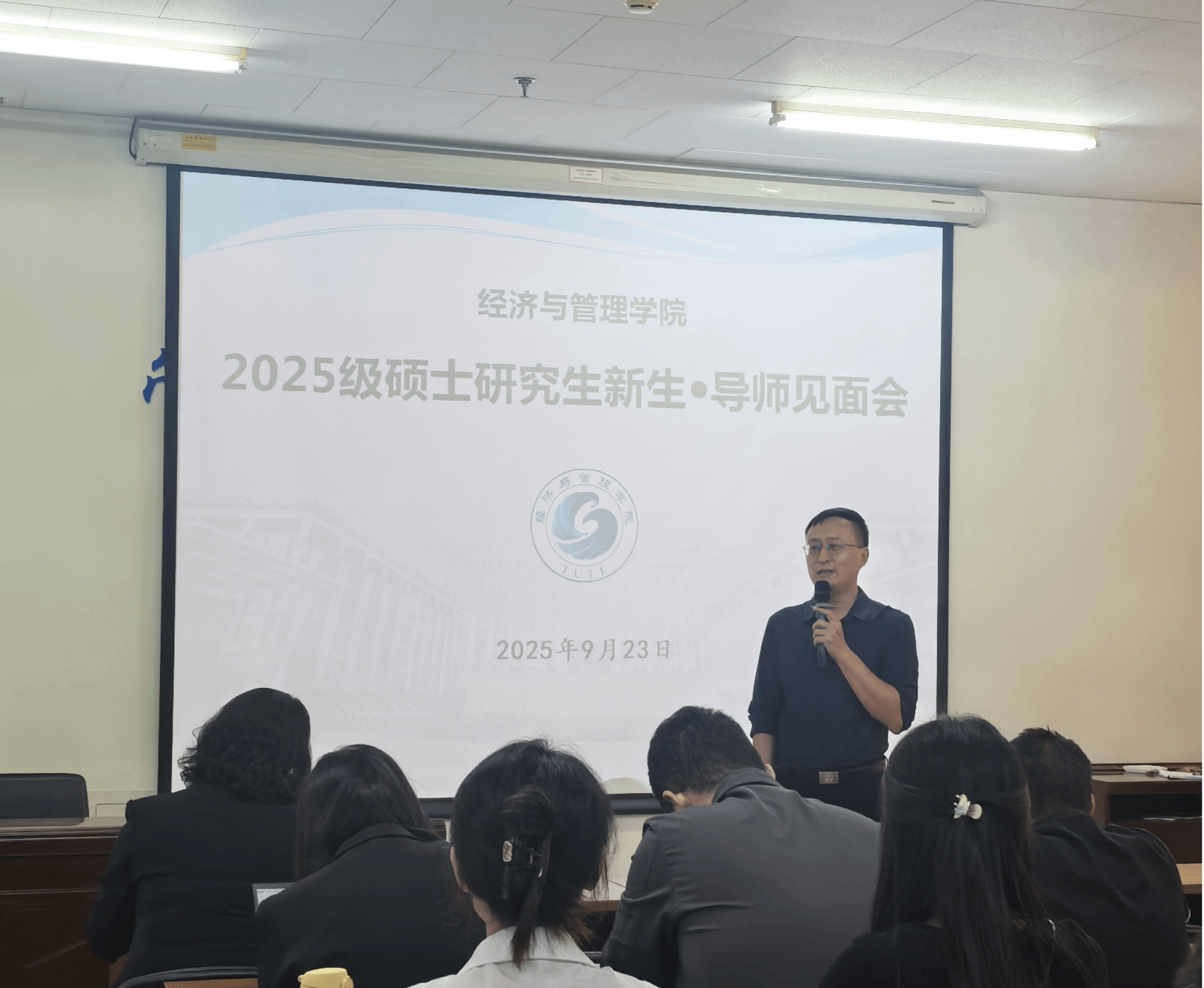 会议伊始,董树功首先对2025级研究生的到来表示热烈欢迎。他指出,本次见面会旨在帮助新生深入了解导师团队、激发学术兴趣,并说明此次会议共包括培养方案说明、2025级研究生导师介绍和师生交流三个环节。