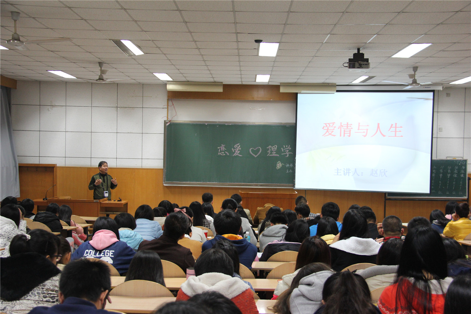 赵欣老师以“爱情与人生”为主题展开,以罗伯特·斯腾伯格的爱情三角理论引入话题,立刻吸引了同学们的兴趣。在接下来的各环节中,赵老师富含哲理但也不失幽默的语言使同学们欢快地融入到讲座中。在讲座过程中,赵老师对爱情的内涵、成分、类型以及爱情的发展进行了细致分析,其中还包含着各种小故事以及自身经历,使同学们获益匪浅,并且亲切叮嘱同学们在恋爱中要学会处理问题以及要好好保护自己。在互动环节,同学们积极向老师请教恋爱方面的问题,赵老师一一进行了解答。