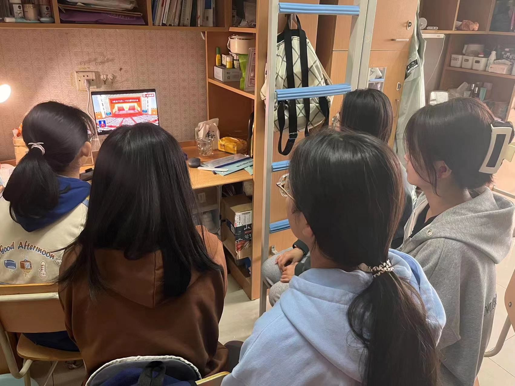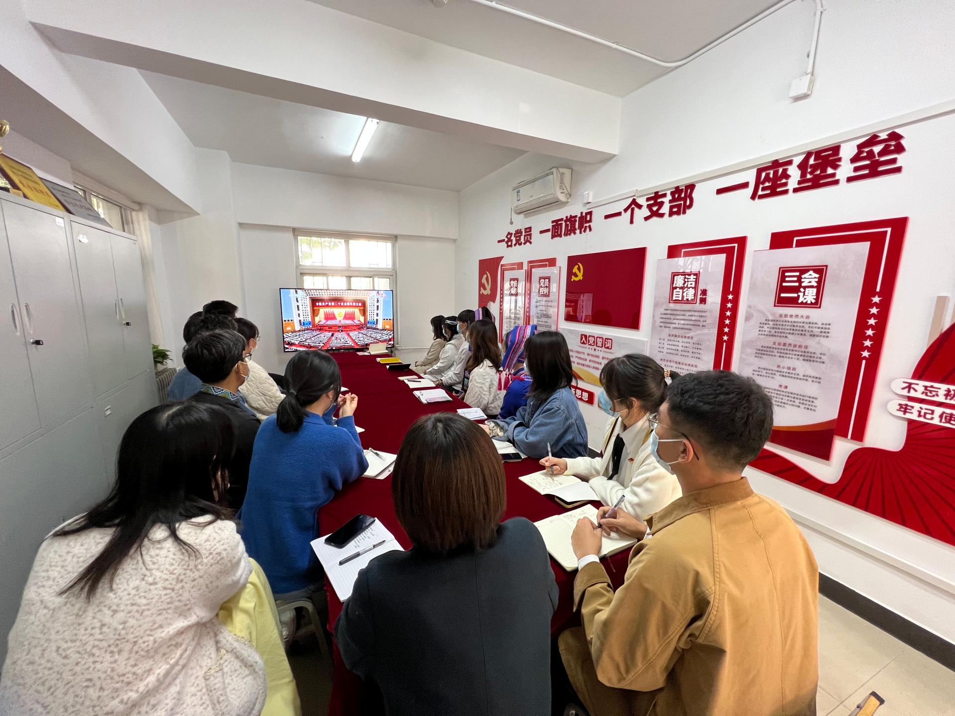 习近平总书记作党的二十大报告,全面总结了党的十九大以来,中国共产党带领全国各族人民取得举世瞩目的成就,以及全面建成社会主义现代化强国两步走战略安排的宏观展望,师生为之振奋,不时响起热烈掌声。收看直播后,广大师生纷纷表示备受鼓舞。